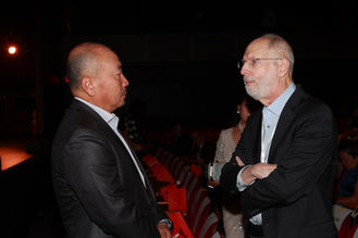 左起:電影節執行總裁,晚會總導演崔婕,前紐約州衆議員楊愛倫,紐約州衆議員金兌錫,電影節主席:Bill Einreinhofer,顧問團主席:Ellen趙瓊博士,電影節副主席:朱宇華教授,電影節總策劃:Sunny Zhang , 祕書長:曹曉冬