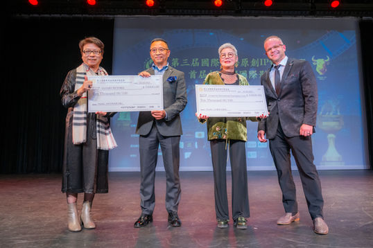 GloArtsPicture火鴻影業CEO曹曉冬女士為獲獎者頒發一萬美元“支票”
